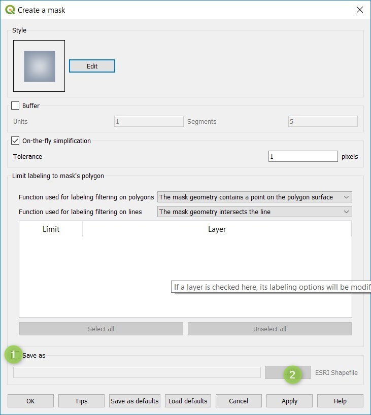 Save asand click on the...button to save the mask as a shapefileThe mask is created and appears as a layer