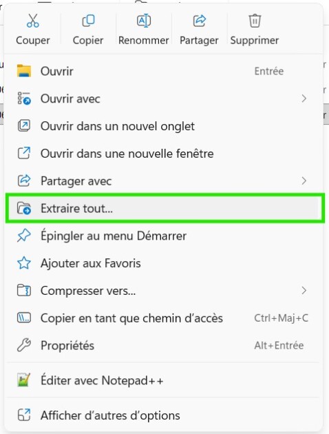 Placez le fichier ZIP dans le dossier de votre choix⚓