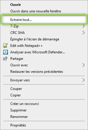 Clic droit sur le fichier / Extraire tout...